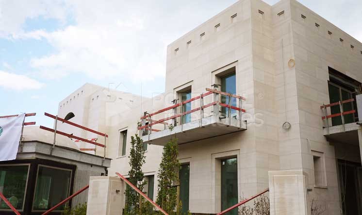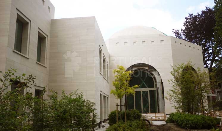 O projeto da embaixada do Qatar em Bruxelas (Bélgica) é um projeto de embaixada de alto nível que é fornecido com pedra calcária de Portugal, neste caso a calcário Moca Creme Clássico. A pedra utilizada na grande maioria do projeto no que diz respeito a revestimentos exteriores para fachada foi o Moca Creme Clássico. Além disso, foi utilizado na maioria dos revestimentos interiores (redondos e direitos), pavimentos e alguma decoração. Nas aplicações internas, o Moca Creme muitas vezes foi utilizado em combinação com a pedra preta Basaltina da Itália, enquanto os exteriores foram combinados com calcário cinzento irlandês.